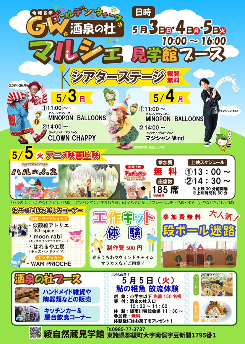 5月5日(火)には、綾自然蔵見学館の多目的ホールにて、アニメ映画の上映を行います!