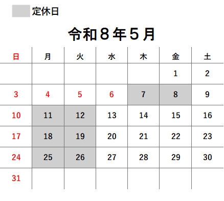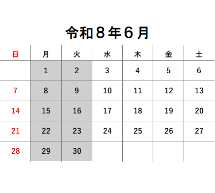 2. 【定休日】令和8年5月・6月の定休日につきまして