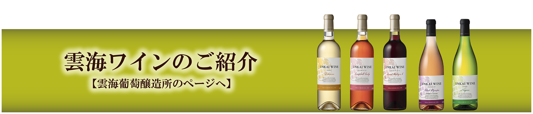 雲海ワインは国産ぶどうを100%使用し、ぶどう本来の旨みと香りを詰め込んだフレッシュでフルーティーなワインとなっております。